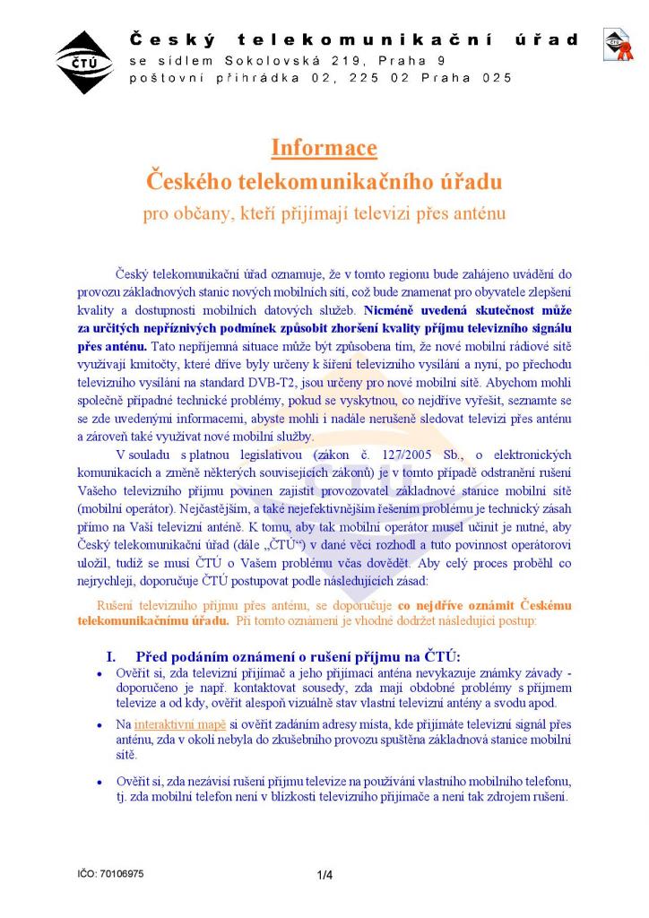 Vážení občané, v příloze naleznete informace Českého telekomunikačního úřadu.